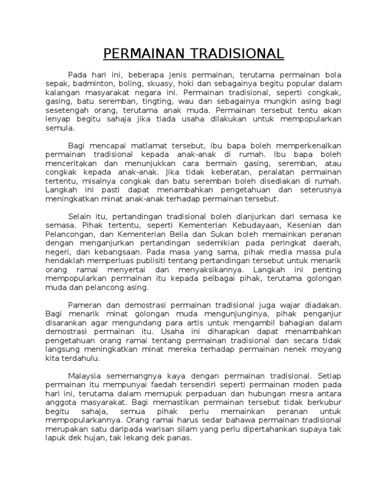 Usaha Bagi Mengekalkan Permainan Tradisional Pdf